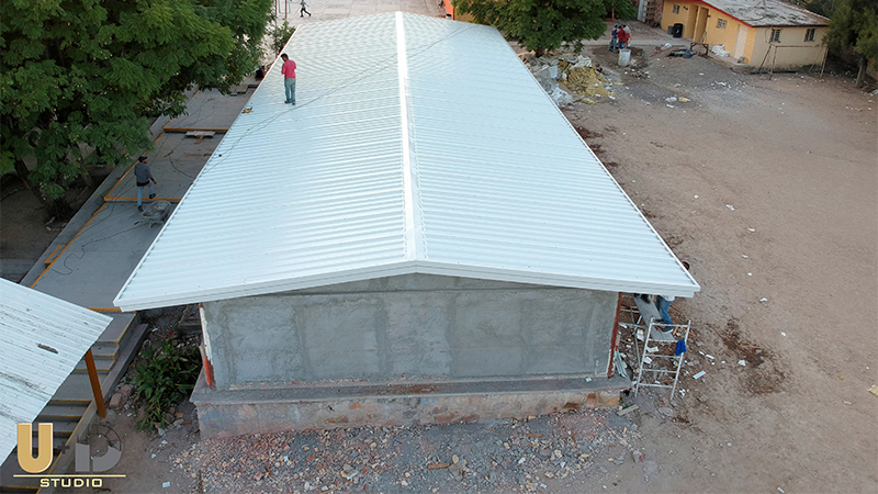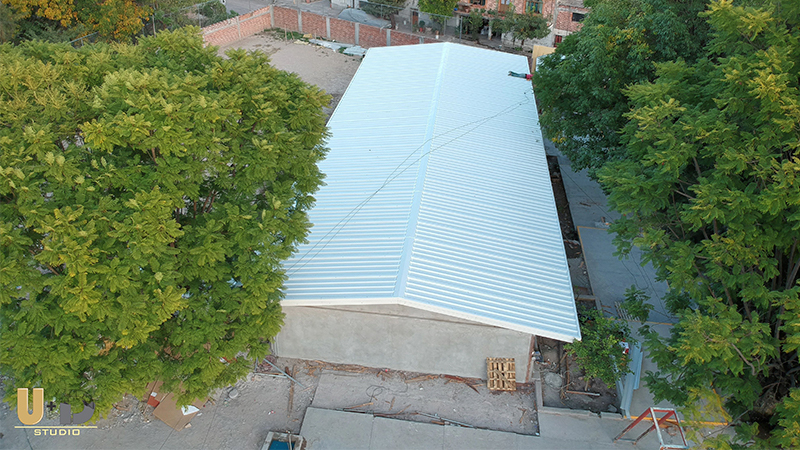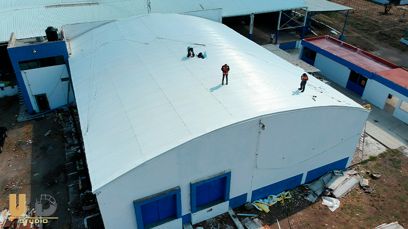 Suministro e Instalación de Lamina O-100 rojo Terracota, Aislamiento Térmico, Pintado de Estructura y fabricación de canaletas pluviales, Fotografias by cedly