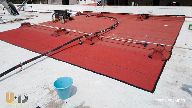 Mantto. Independencia Cubierta Aplicación de Impermeabilizante a base de Impercoat Primario SL Asfaltico, Impercoat Cemento N y Prefabricado Soldable Naya 4.5 PG rojo.. Fotografias by cedly