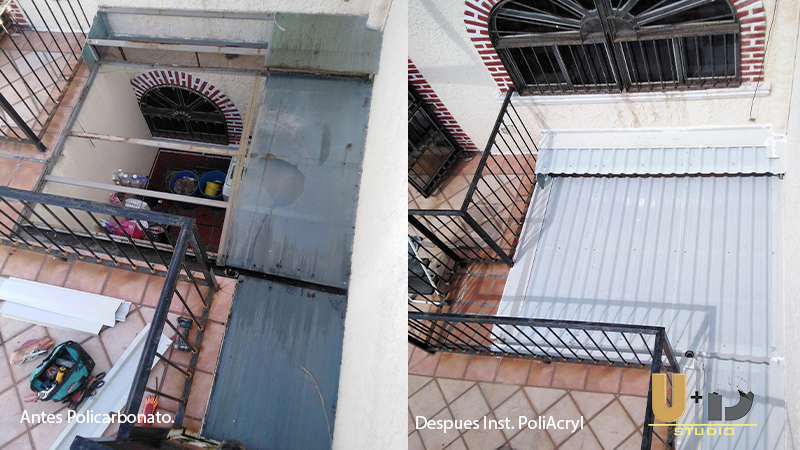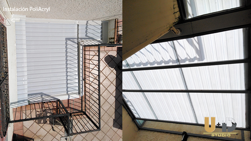 Instalación de Cubierta R-101 y sellado de Policarbonato, Fabricación e Instalación de molduras. by cedly